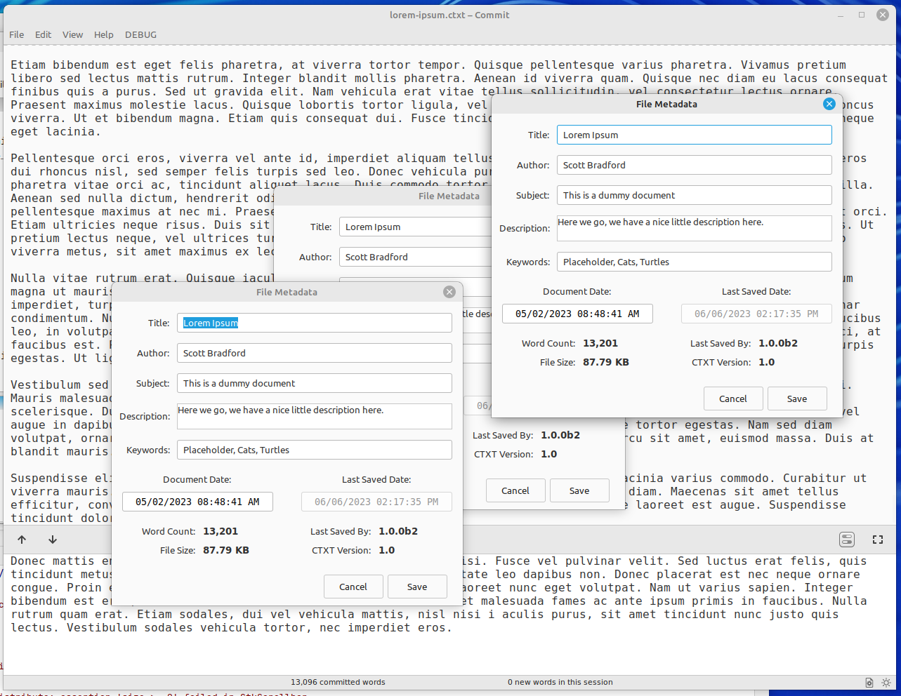 | Description | The metadata window is not modal (and it's not supposed to be), but that means you can click the metadata button again, and if you do it opens a second metadata window (or third, or fourth). Bad. | ||||